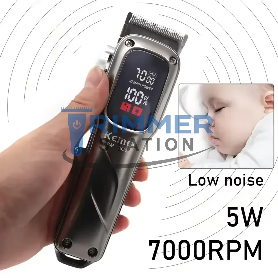 Achieve salon-quality grooming right at home with the Kemei KM-1550 Professional Hair Clipper and Beard Trimmer. Engineered for precision and durability, this high-performance grooming tool features super-sharp stainless steel blades that deliver a smooth, snag-free cut, ensuring absolute comfort even on sensitive skin. Powered by a quiet yet highly efficient motor, it provides consistent and powerful cutting performance without the annoying noise. The long-lasting rechargeable battery offers the ultimate freedom of cordless operation, allowing you to complete multiple grooming sessions on a single charge. Complete with an ergonomic grip and versatile adjustable guide combs, it is the perfect all-in-one tool for crisp hairlines, detailed beard shaping, and full-body grooming.